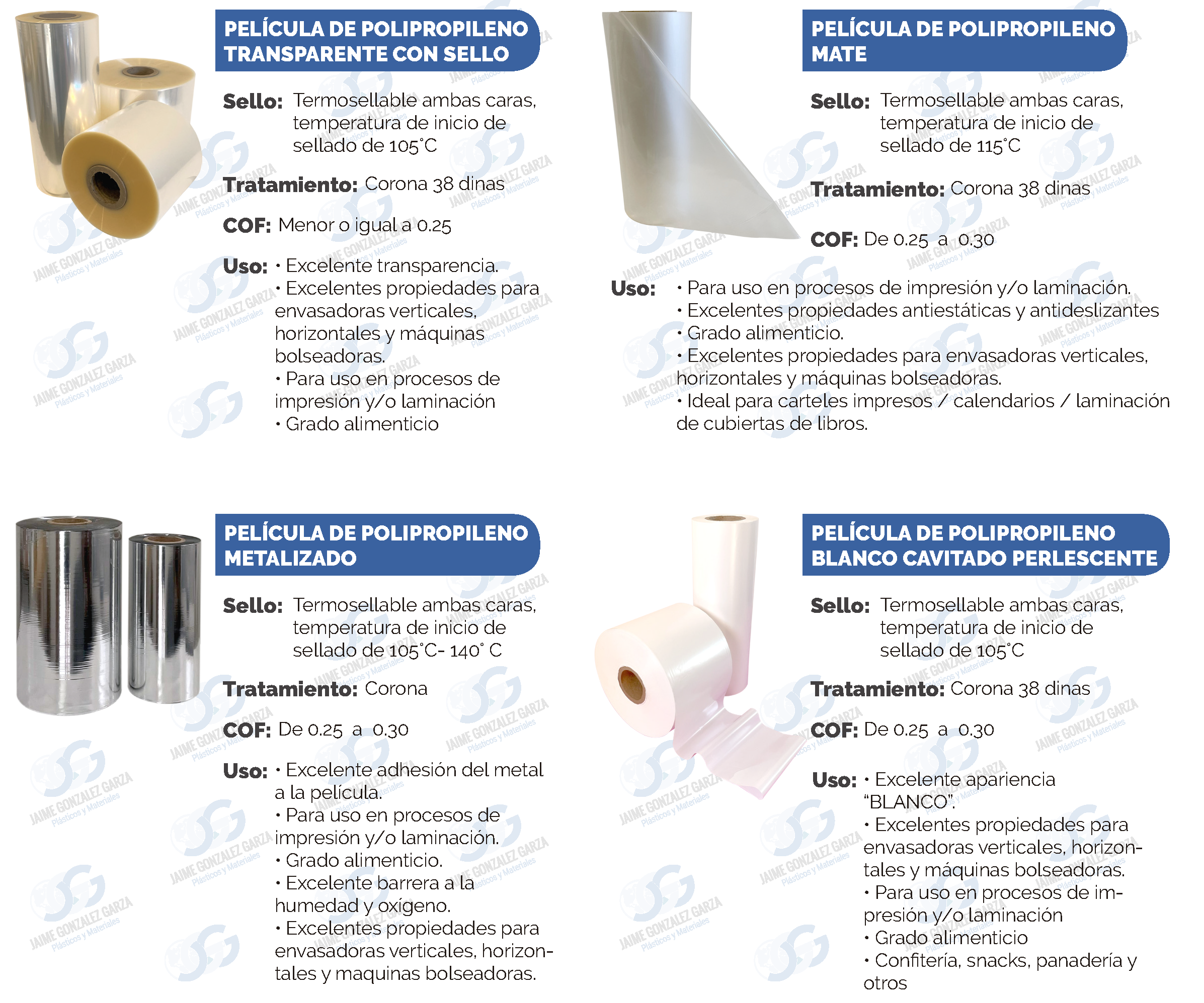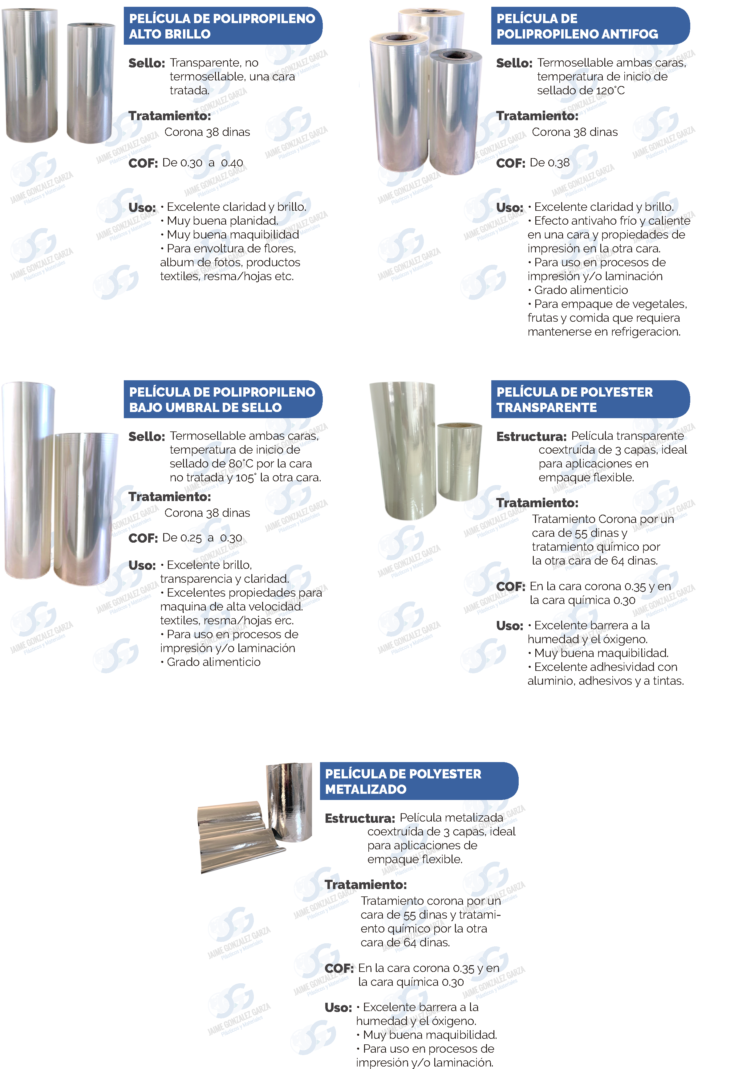 Jaime Gonzalez Garza, es una empresa dedicada a la comercialización de películas plásticas, asegurando la satisfacción y el crecimiento sostenido de sus accionistas, clientes y colaboradores; fomentando la calidad, y brindando óptimas condiciones de seguridad, servicio y protección del medio ambiente.